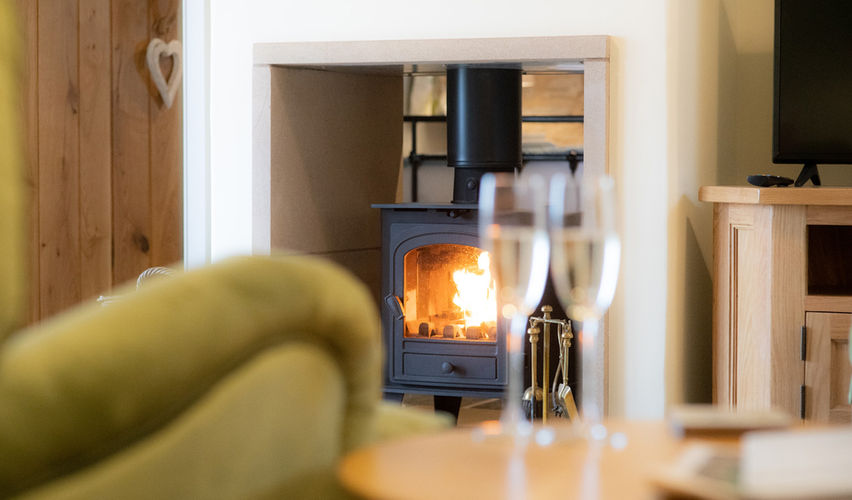 The most perfect couples hideaway and ideal setting for a romantic break. This converted dairy building has it all. The bedroom has a king-sized bed, a TV, and a double sided log burning stove so that you can drift off at night to the flickering embers of the fire that you set earlier in the day in the living room! There is a spacious en-suite roll topped bath and shower room.